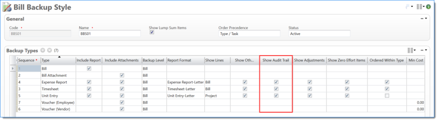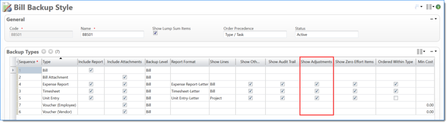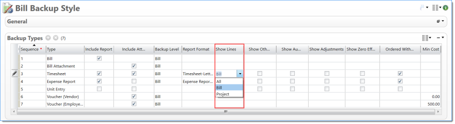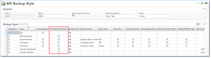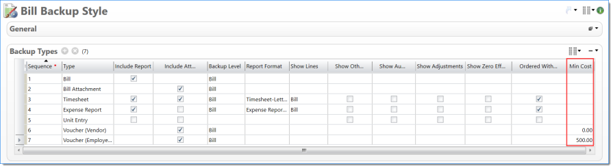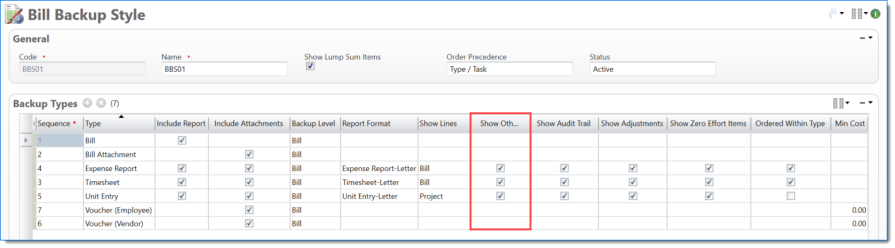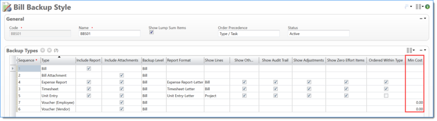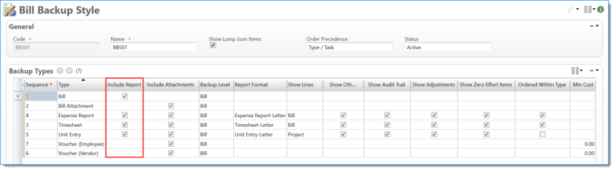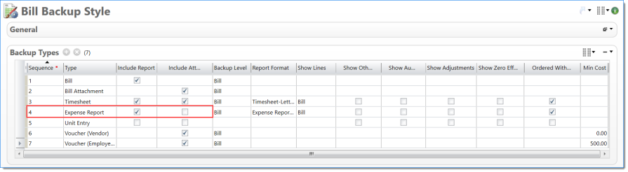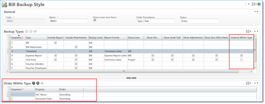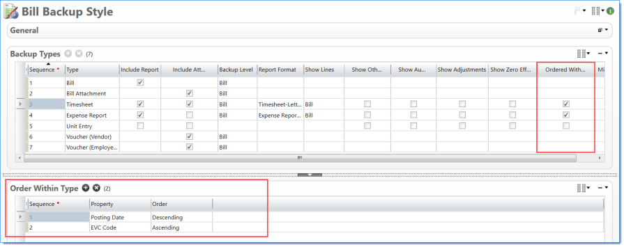 Bill Backup Style where Timesheets and Expense Reports ordered first by Posting Date and then by EVC Code