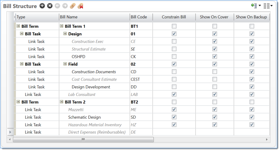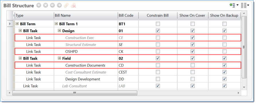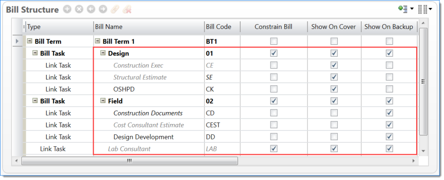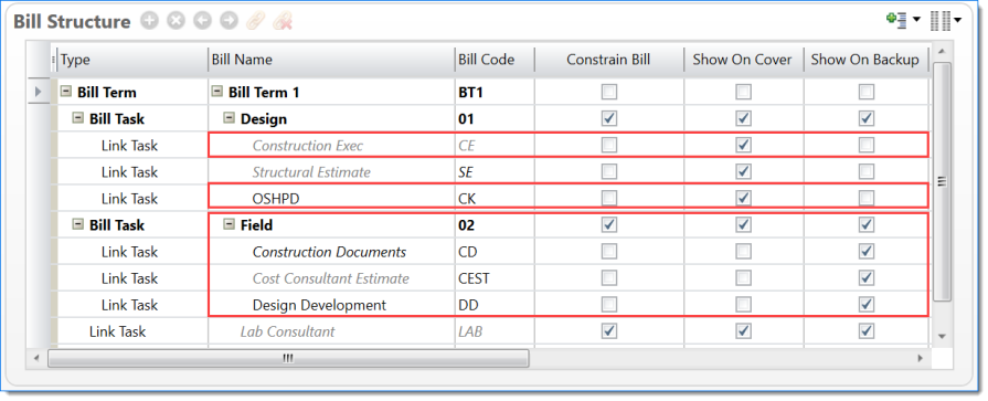 Show all lines for tasks from this bill term (tasks linked in bill structure) |