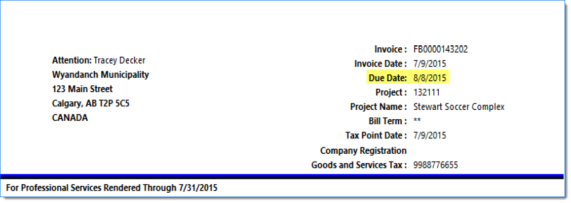 | Note: Descriptions are pulled from the Project / Bill Terms / Bill Description. |