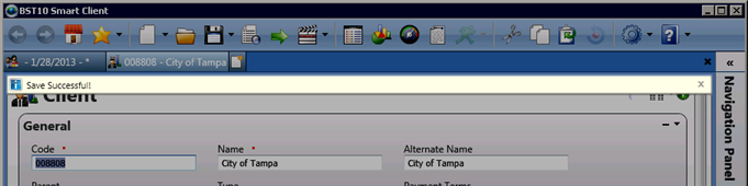 When you apply an action, like validate, save, or submit, BST11 will display error, warning, and informational messages as needed. Messages display in a yellow banner at the top of a tab in the content pane. Only a single message can display, so when multiple messages are available, the message with the highest level of severity is displayed on the banner.